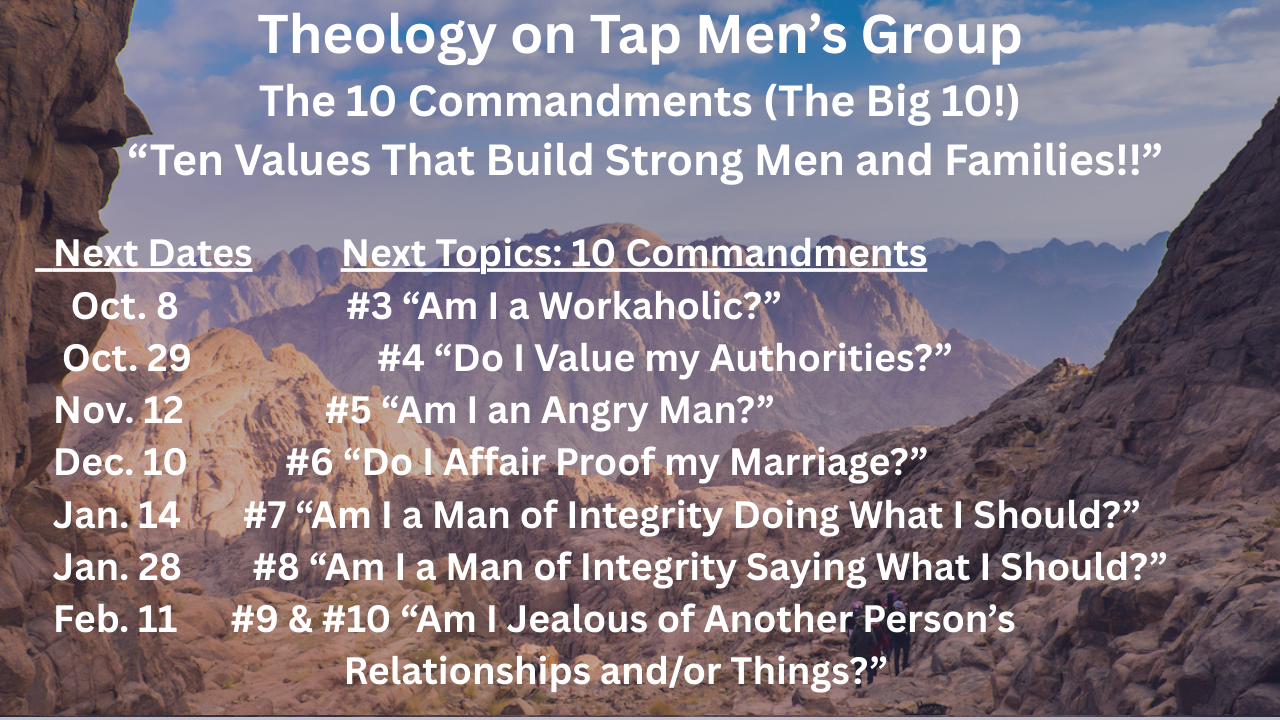 Who & What: Adult men diving into questions about the Bible from a new perspective, led by Rick Toburen along with various speakers.